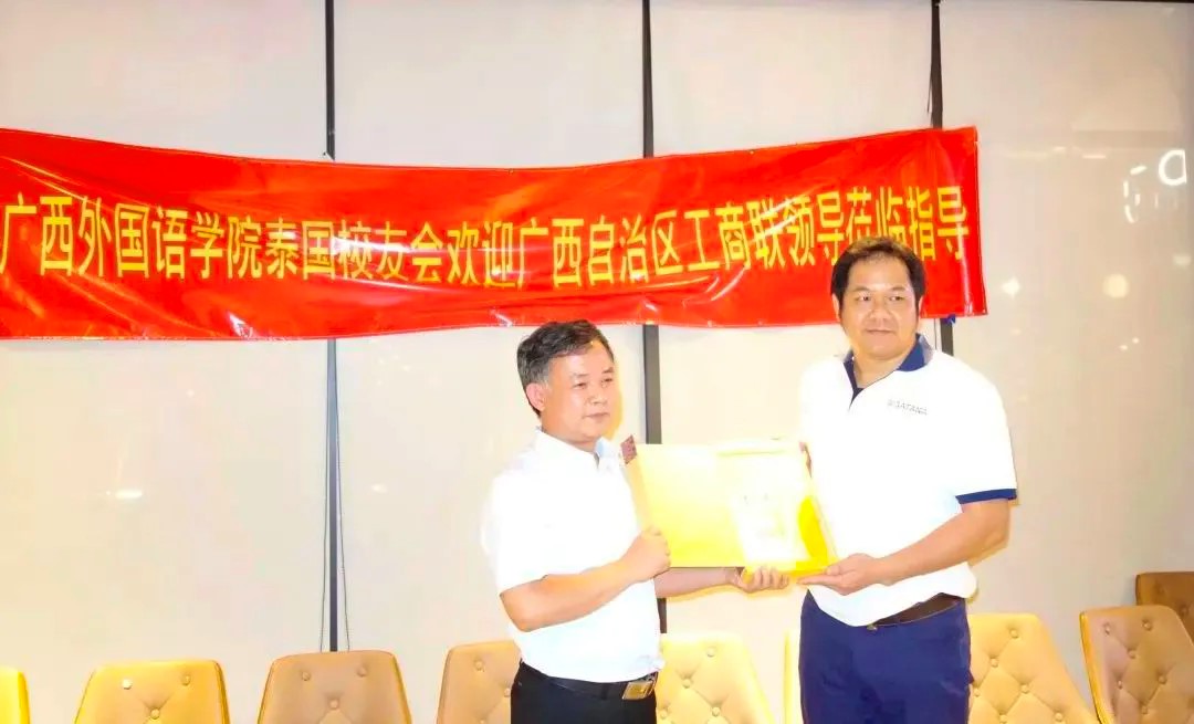 ໃນວັນທີ 21-27 ມິຖຸນາ 2023 ທີ່ຜ່ານມາ ການປະຊຸມສະໄໝທີ 16 ຂອງສະພາຜູ້ປະກອບການຈີນທົ່ວໂລກ ໄດ້ຖືກຈັດຂຶ້ນທີ່ນະຄອນບາງກອກປະເທດໄທ. ໃນໂອກາດນີ້ ທ່ານ ເຢ້ຈຸ້ນເມົ້າ ຮອງປະທານສະພາອຸດສາຫະກໍາ ແລະການຄ້າເຂດປົກຄອງຕົນເອງກວາງຊີ ໄດ້ນຳຄະນະເຂົ້າຮ່ວມການປະຊຸມ ແລະໄດ້ພົບປະກັບຕົວແທນສະມາຊິກສະພານັກສຶກສາເກົ່າ ຂອງມະຫາວິທະຍາໄລພາສາຕ່າງປະເທດກວາງຊີ ປະຈຳປະເທດໄທ ຢ່າງອົບອຸ່ນ ແລະໄດ້ໃຫ້ຄຳແນະນຳຢ່າງໃກ້ຊິດ ເພື່ອສົ່ງເສີມການພັດທະນາງານສ້າງຄວາມສາມັຄຄີຂອງສະພານັກສຶກສາເກົ່າປະຈຳປະເທດໄທ.