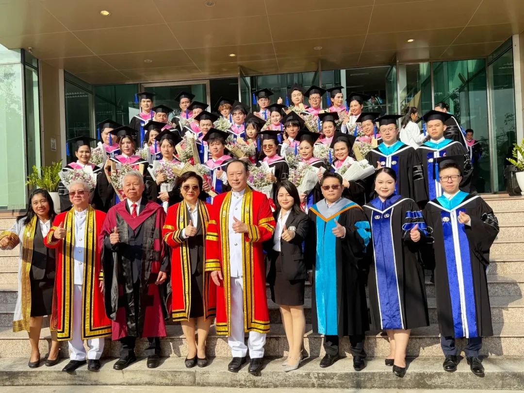 2月7日、広西外国語学院2026年度のタイ・バンコク北部大学への進学者が学业を無事に修了し、厳粛かつ温かみのある卒業式にて人生の新たな一歩を踏み出した。本年度の卒業生は計59人で、多層的な人材育成体制を反映している。その内訳は、ビジネス英語学部交換留学生29人、ビジネス英語専攻修士課程学生12人、教育哲学管理博士課程学生2人、教育学修士課程学生16人で、全員が優れた成績で卒業し、中国ーASEAN協力に貢献する人材育成と高水準の国際化教育における本校の段階的な成果を十分に示した。