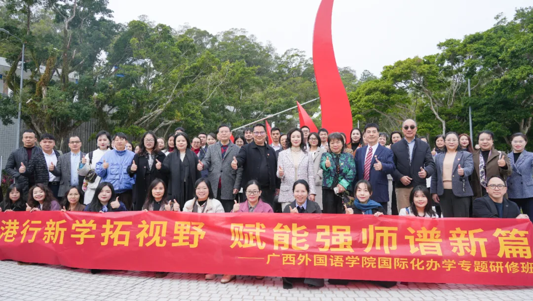 To further advance international exchanges and cooperation, precisely connect with world-class educational and innovative resources, and empower educational and teaching reform as well as scientific research and innovation with artificial intelligence technology, Dr. Wei Qian, Chairperson of Guangxi University of Foreign Languages, led a delegation to The Hong Kong University of Science and Technology for a special inspection and exchange activity from January 22 to 24. A study tour of more than 50 people, including university leaders, heads of relevant functional departments, deans of subordinate colleges and key teachers, participated in this activity. In-depth and fruitful discussions were held on core topics such as higher education innovation in the context of artificial intelligence and international industry-university-research cooperation.